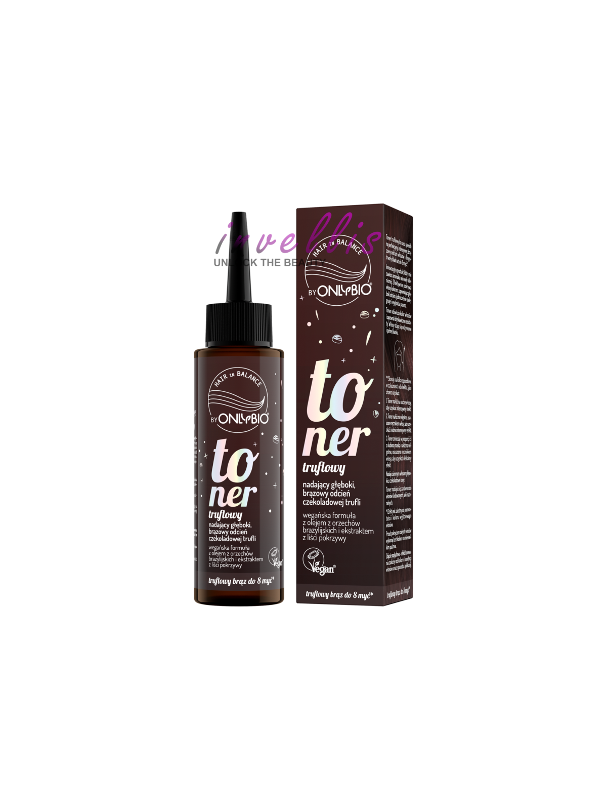Hair toner Truffle Hair In Balance by OnlyBio refreshing the color and giving a deep brown shade of chocolate truffle with subtle highlights.