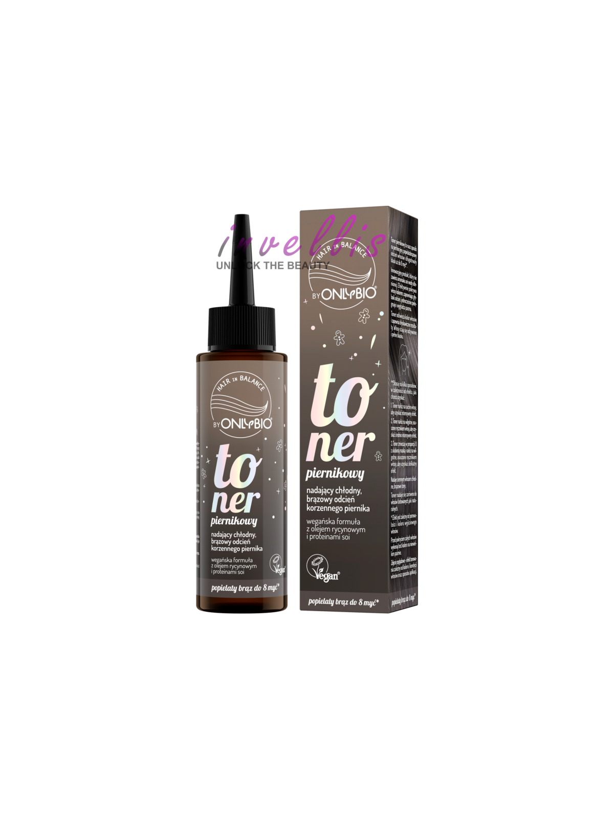 Gingerbread hair toner Hair In Balance by OnlyBio, which refreshes the color and gives a cool brown shade with ashy tones and delicate highlights.